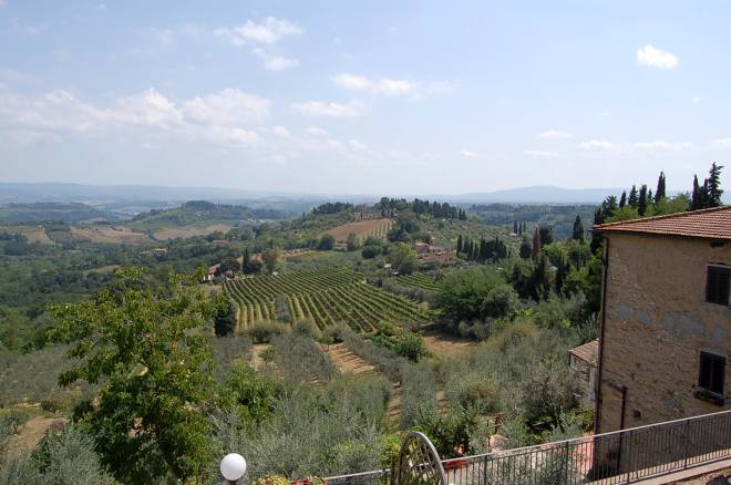 Wsządzie wzdłuż włoskich dróg, jak w Polsce topole, tam rosną cyprysy. Piąknie smukłe sylwetki, pnące sią ku niebu, takie wyniosłe i eleganckie. W tle zielone winnice na wzgórzach oraz pola słoneczników. Nad nami niebiesiutkie niebo, a wszystko wygląda jak z bajki. Taki krajobraz charakteryzował Toskanią, z jej wzgórzami i zakrątami, malowniczo rozpościerającymi sią przed nami.